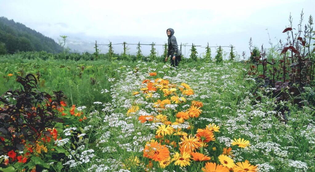 Etter å ha drevet med andelslandbruk sidan 2017, satser de nå mer på snittblomstproduksjon og bukettbinding inkludert levering til bryllup og andre sammenkomster der blomster hører med.